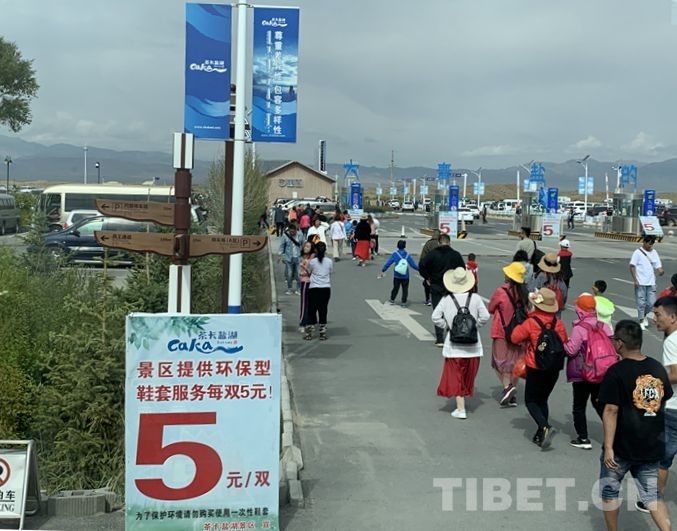2019年8月5日,記者在茶卡鹽湖景區(qū)看到,游客們正在井然有序地排隊(duì)等候購票進(jìn)入園區(qū),道路交通秩序良好,停車場車輛整齊停放,“環(huán)保型鞋套服務(wù)5元一雙”的租賃標(biāo)識十分醒目,此外,咨詢服務(wù)區(qū)、票務(wù)服務(wù)區(qū)、游客集散地、產(chǎn)品展銷區(qū)等八個功能區(qū),為游客們提供了旅游餐飲、旅游互動體驗(yàn)等多位一體的旅游綜合服務(wù)。