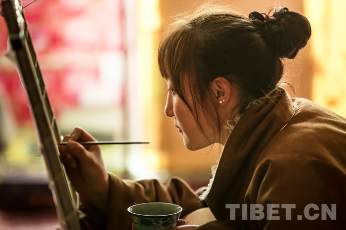 圖為進(jìn)行唐卡創(chuàng)作的學(xué)員攝影:戚宇
