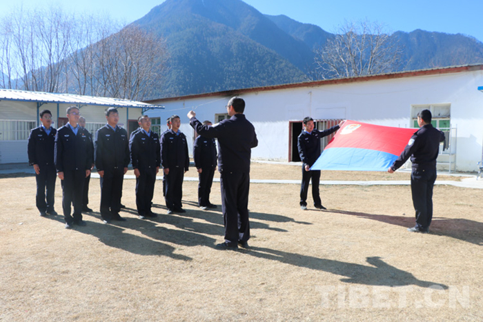中國(guó)西藏網(wǎng)訊 “升旗儀式現(xiàn)在開(kāi)始,‘升旗手’就位……” 1月1日上午,一聲聲鏗鏘有力的口令響徹雅魯藏布江畔。在西藏林芝邊境管理支隊(duì)機(jī)關(guān),全體民警隊(duì)伍整齊劃一站定,伴隨著國(guó)歌的奏響,鮮紅的五星紅旗在歌聲中緩緩升起,全體民警肅然起敬,懷著崇高的敬意和無(wú)比的自豪心情向莊嚴(yán)的五星紅旗敬禮。為進(jìn)一步增強(qiáng)集體榮譽(yù)感,凝聚警心,激發(fā)斗志,有效緩解工作壓力,西藏林芝邊境管理支隊(duì)以“慶元旦,守使命,再出發(fā)”為主題,開(kāi)展系列節(jié)日慶?;顒?dòng)。