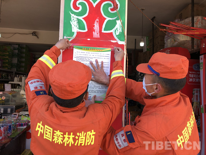 西藏森林消防總隊在西藏自治區(qū)6市17縣采取防火宣傳小分隊進(jìn)社區(qū)、進(jìn)林區(qū)、進(jìn)企業(yè)、進(jìn)村莊、進(jìn)農(nóng)戶的“五進(jìn)”形式,以重點林區(qū)、人員密集區(qū)為重點,以宣傳強(qiáng)意識、設(shè)卡堵火種、檢查除隱患、遇火早撲滅為任務(wù)在重點地段、重要林區(qū)、景區(qū)、入山路口懸掛防火標(biāo)語、設(shè)置火源檢查站。出動100余名指戰(zhàn)員深入重點林區(qū)、景區(qū)實施靠前駐防,通過向過往群眾、游客講解森林火災(zāi)常識、體驗滅火裝備等方式,做好節(jié)日期間森林防火工作。