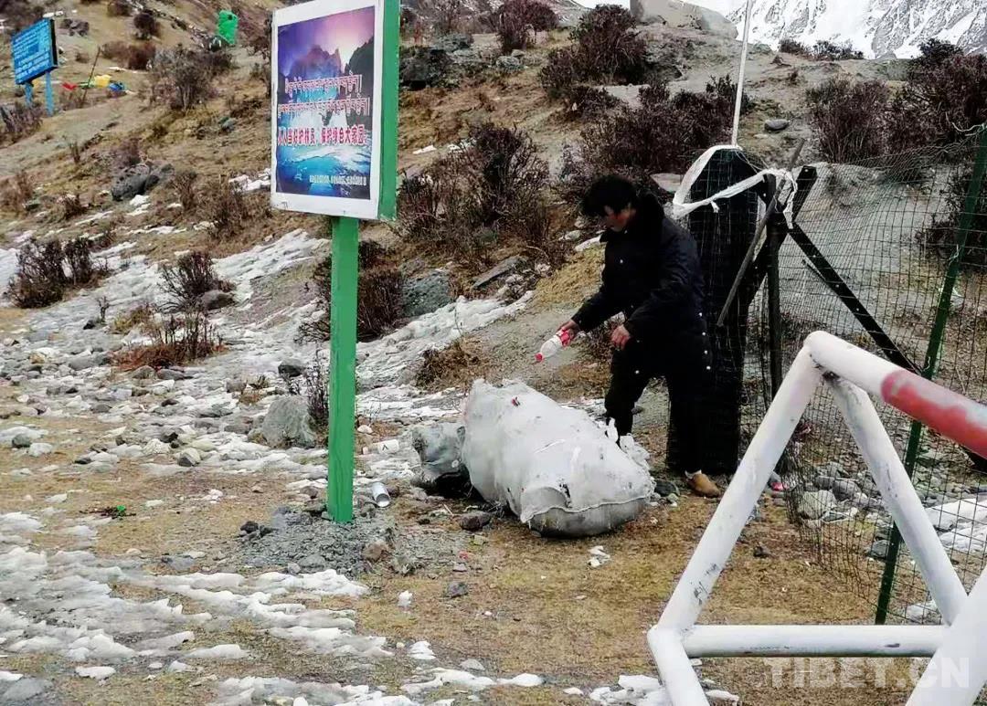 圖為巡邏隊成員在薩普冰川清理生活垃圾
