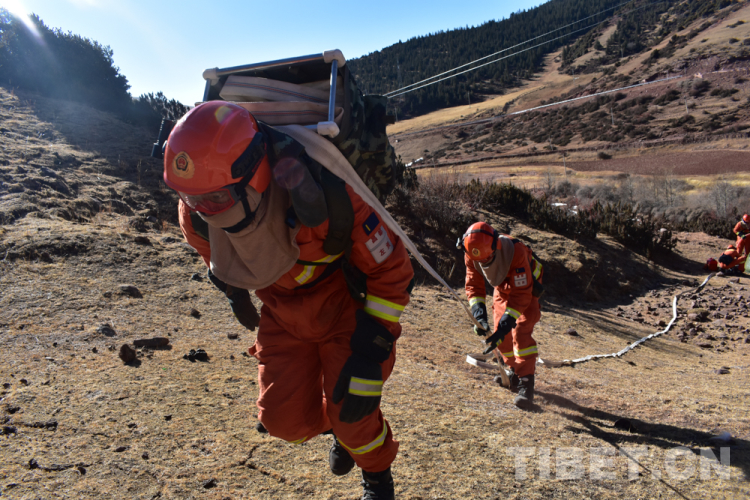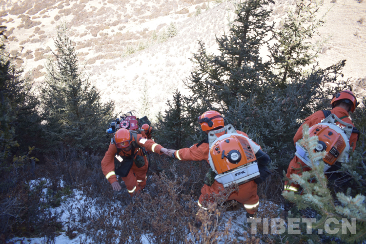 圖為左貢縣森林消防中隊(duì)駐芒康分隊(duì)指戰(zhàn)員團(tuán)結(jié)互助共同前行