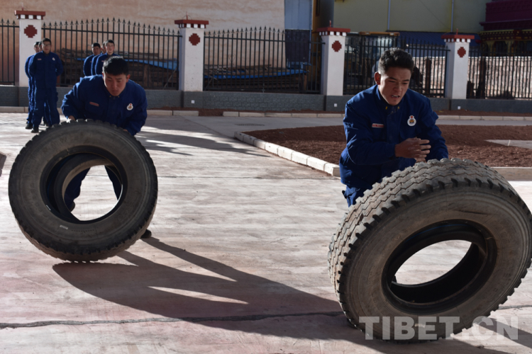圖為左貢縣森林消防中隊(duì)駐芒康分隊(duì)指戰(zhàn)員進(jìn)行體能訓(xùn)練