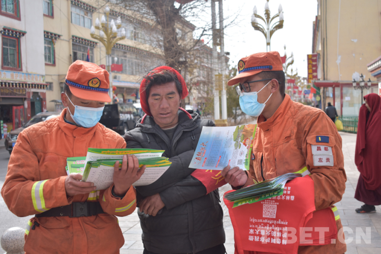 圖為左貢縣森林消防中隊(duì)駐芒康分隊(duì)指戰(zhàn)員宣傳防火知識(shí)