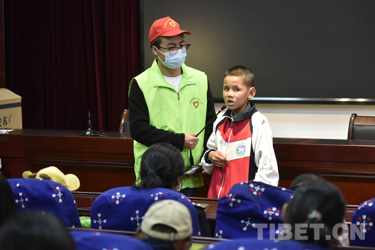 在拉薩市特殊學(xué)校會議室里,志愿者和特校兒童聊天談心、互動(dòng)游戲,會議室里不時(shí)傳來陣陣掌聲和歡笑聲。