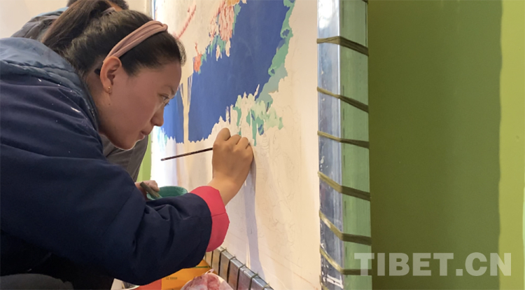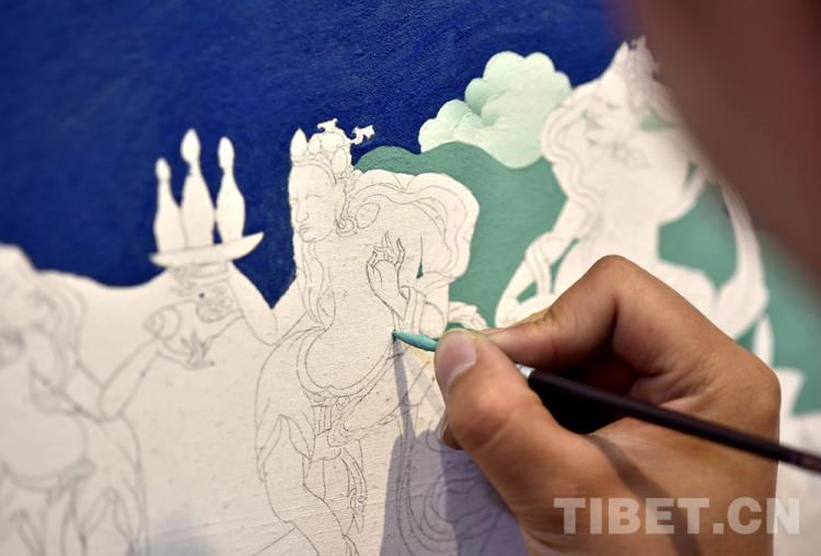 白描、勾線、上色……每一個步驟重復(fù)得熟稔于心,尼瑪倉拉進(jìn)入了畫院高級班學(xué)習(xí)。去年,她更是得到畫院老師們的認(rèn)可,加入到功德林寺壁畫修復(fù)的行列。