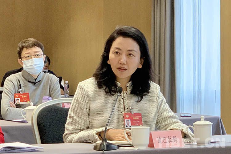 圖為邊巴拉姆做會議發(fā)言
