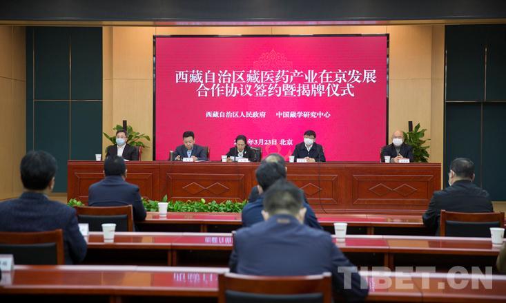 中國西藏網(wǎng)訊 3月23日,西藏自治區(qū)藏醫(yī)藥產(chǎn)業(yè)在京發(fā)展合作協(xié)議簽約暨揭牌儀式在京舉行。西藏自治區(qū)人民政府、中國藏學研究中心、西藏自治區(qū)衛(wèi)生健康委員會(藏醫(yī)藥產(chǎn)業(yè)推進辦公室)、山南市藏醫(yī)醫(yī)院、西藏甘露藏醫(yī)藥產(chǎn)業(yè)集團有限公司等相關負責人參加儀式。中國藏學研究中心黨組書記陳宗榮,西藏自治區(qū)人民政府副主席羅梅分別致辭,中國藏學研究中心總干事鄭堆主持。