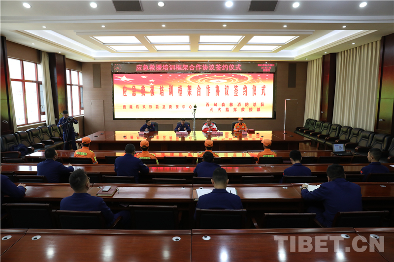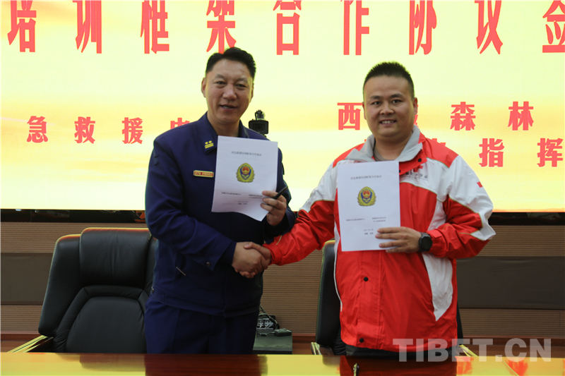中國西藏網(wǎng)訊 4月1日下午,西藏自治區(qū)森林消防總隊與西藏玖玖玖緊急救援中心簽訂培訓(xùn)框架合作協(xié)議。