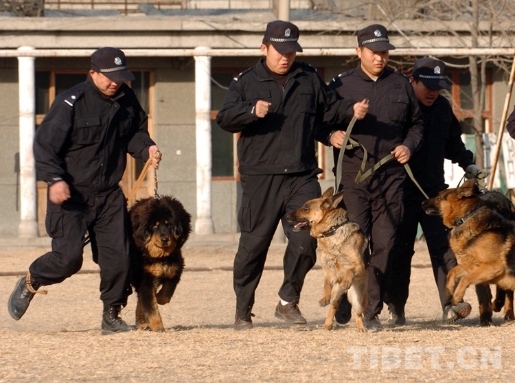 藏獒因其身材高大、性情威猛、對(duì)主人極度忠誠(chéng)和對(duì)陌生人的極度警惕的特點(diǎn),很適合應(yīng)用于公安部門(mén)的防暴工作。
