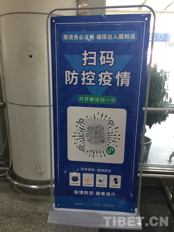 圖為貢嘎機場疫情防控掃碼標示