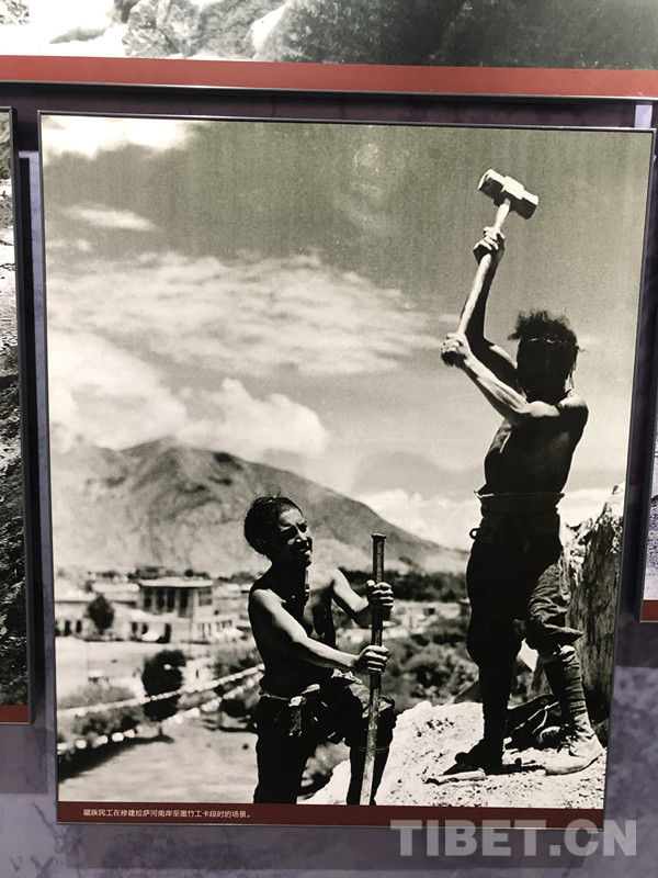 圖為西藏人民艱苦卓絕修筑公路