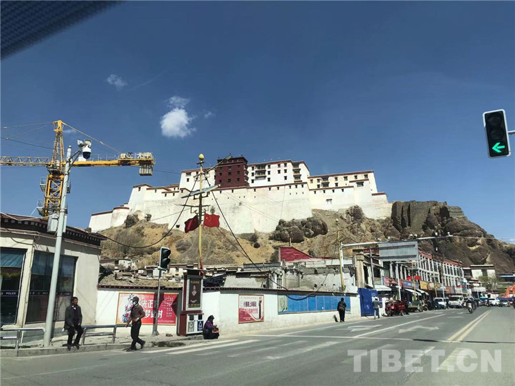 圖為從桑珠孜城堡俯瞰日喀則市區(qū)景象
