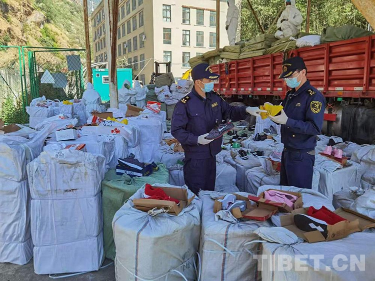 圖為拉薩海關(guān)所屬聶拉木海關(guān)查獲涉嫌侵權(quán)貨物