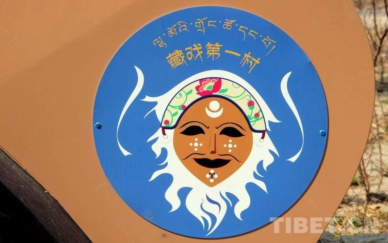 圖為扎西曲登社區(qū)引以為豪的“藏戲第一村”標志 攝影:劉莉