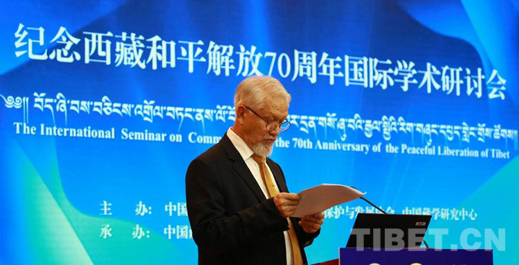 5月19日,在紀(jì)念西藏和平解放70周年國際學(xué)術(shù)研討會上,全國政協(xié)委員,西藏自治區(qū)政協(xié)常委、僑聯(lián)副主席謝文·根多做了題為《從個人經(jīng)歷談西藏和平解放的意義》的發(fā)言。