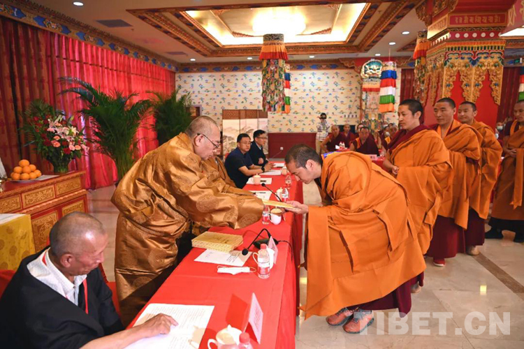 圖為中國佛教協(xié)會(huì)副會(huì)長(zhǎng)、藏傳佛教學(xué)銜工作指導(dǎo)委員會(huì)主任、中國藏語系高級(jí)佛學(xué)院院長(zhǎng)嘉木樣活佛向?qū)W員頒發(fā)學(xué)銜證書
