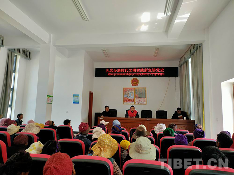 圖為山南扎囊縣扎其鄉(xiāng)新時(shí)代文明實(shí)踐所志愿者宣講黨史 扎囊縣 供圖