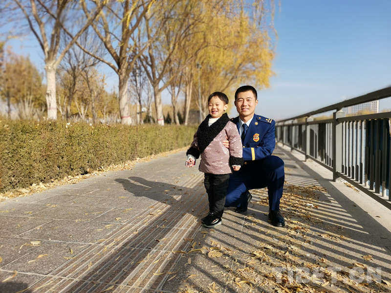 這是爸爸去年回家我們一起拍的照片,爸爸給我買了嶄新的小藏袍,我好高興啊。另外,我可不是眼睛小,我只是隨我爸爸!