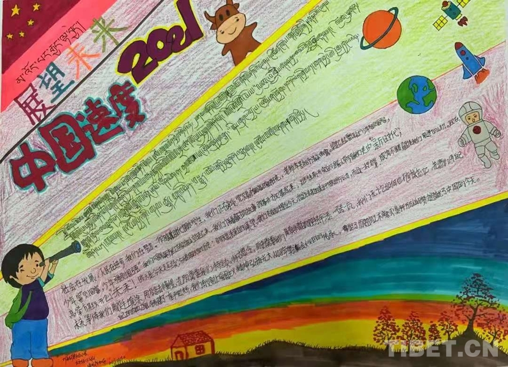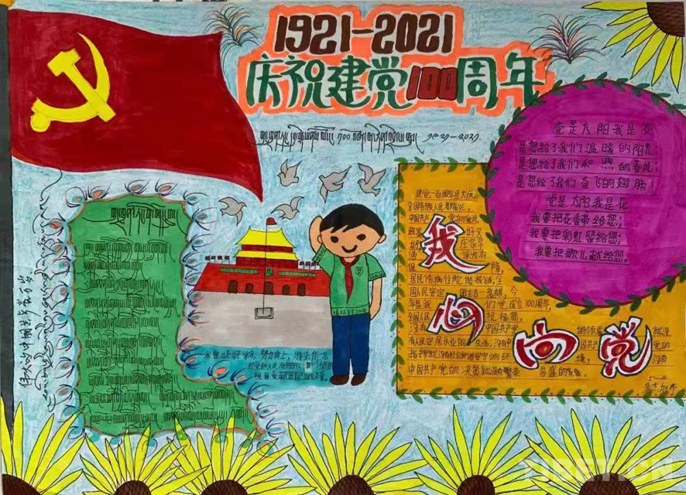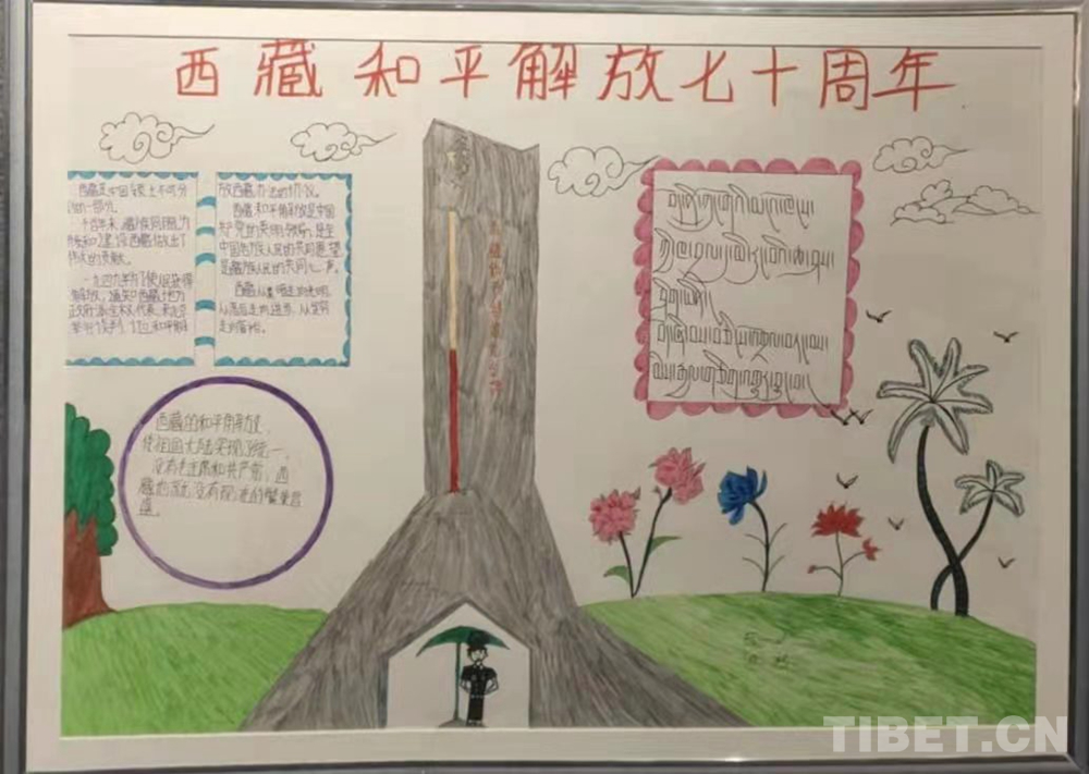 此次展覽是在慶祝中國共產(chǎn)黨成立100周年、西藏和平解放70周年之際,舉辦的一次展示西藏少年精神面貌的少兒手抄報(bào)專題展。展覽從今年三月份開始策劃,共展出240幅堆龍德慶區(qū)小學(xué)生手抄報(bào)。