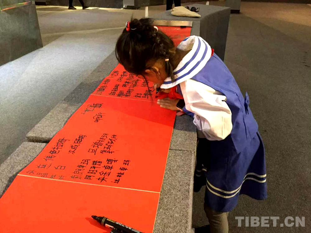 “平時學(xué)校會在各種不同的節(jié)日,給我們布置很多類似作業(yè),這次專門跟媽媽一起過來學(xué)習(xí),想看看其他孩子怎么寫的,順便我讓媽媽拍了很多我喜歡的作品,這樣以后媽媽鋪導(dǎo)類似作業(yè)的時候會輕松很多?!眳⒂^者拉薩市第一小學(xué)二年級5班旦增格??吹煤苷J(rèn)真。