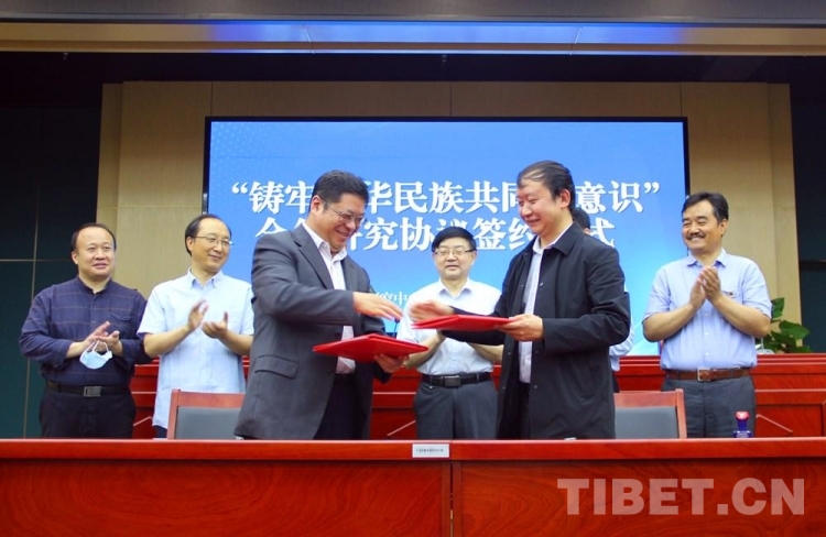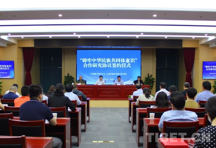 中國(guó)西藏網(wǎng)訊 6月7日,中國(guó)藏學(xué)研究中心與云南省迪慶州藏學(xué)研究院(迪慶州鑄牢中華民族共同體意識(shí)研究教育實(shí)踐中心)合作開(kāi)展“鑄牢中華民族共同體意識(shí)”研究協(xié)議簽約儀式在北京舉行。中國(guó)藏學(xué)研究中心黨組書(shū)記陳宗榮、迪慶州藏學(xué)研究院黨組書(shū)記和樹(shù)軍分別致辭。中國(guó)藏學(xué)研究中心總干事鄭堆主持儀式,簽約雙方相關(guān)部門負(fù)責(zé)人及部分專家學(xué)者參加了儀式。