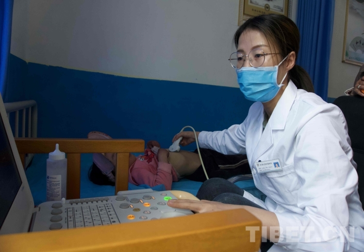 圖為青海大學(xué)附屬醫(yī)院肝膽胰外科醫(yī)師王晶晶在篩查工作中(組委會(huì)供圖)