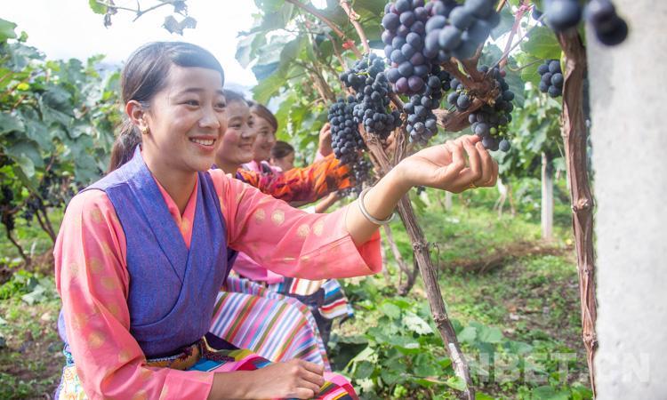 圖為芒康縣群眾在葡萄園內勞作 攝影:趙耀