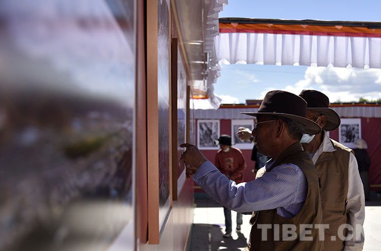 在展覽現(xiàn)場(chǎng),達(dá)娃一邊看作品,一邊向身旁的兒子索朗扎西做介紹,給他講述一張張圖片背后的故事?!斑@些新舊的圖片,看了以后感觸很多。八廓街、沖賽康,許多熟悉的地方發(fā)展進(jìn)步特別大,可見(jiàn)國(guó)家的強(qiáng)大、西藏的變化?!边_(dá)娃說(shuō),兒子索朗扎西雖聽(tīng)過(guò)一些地方,但是不知道這些地方曾經(jīng)什么樣,特意帶他來(lái)看看,也是一種教育。