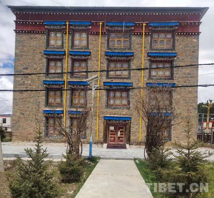 駛入綠意盎然的嘉黎縣,穿過繁華有序的人民東路,眼前映入飄著五星紅旗的大門,里面矗立著兩棟大樓,一棟為現(xiàn)代化大樓,另一棟為傳統(tǒng)藏式建筑。