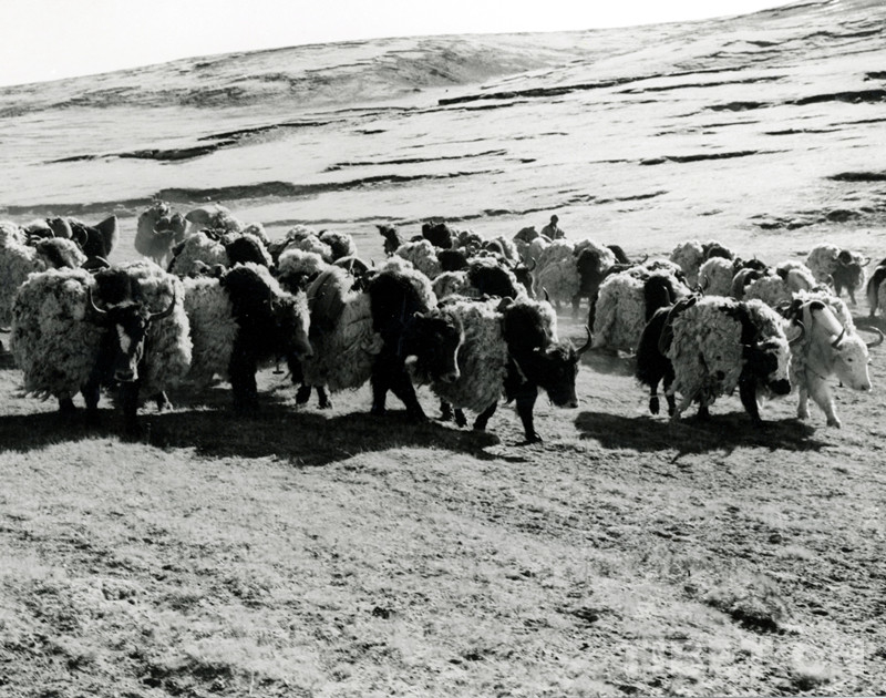 這是過(guò)去馱運(yùn)所交售羊毛的牦牛隊(duì)(唐召明1987年攝)