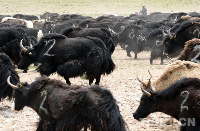 這是藏北雙湖縣嘎措鄉(xiāng)牧民在騎摩托車(chē)放牧牦牛(唐召明2017年7月24日攝)