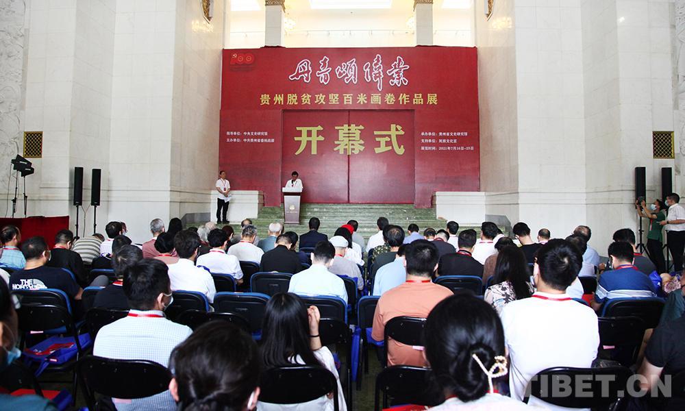 中國(guó)西藏網(wǎng)訊 7月16日,由中央文史研究館指導(dǎo)、貴州省委統(tǒng)戰(zhàn)部主辦,貴州省文史研究館承辦的《丹青頌偉業(yè)——貴州“脫貧攻堅(jiān)”百米畫(huà)卷》主題展覽在北京民族文化宮隆重開(kāi)幕。