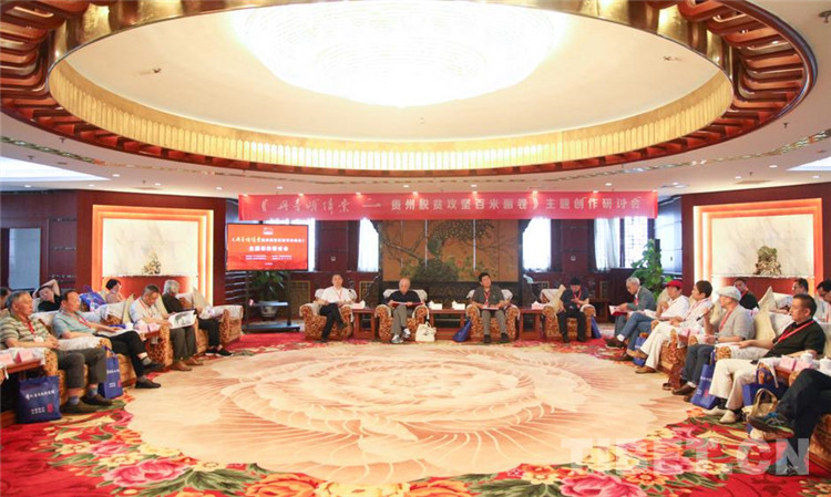 開(kāi)幕當(dāng)天,百米畫(huà)卷主創(chuàng)人員以及多位專家學(xué)者還就《丹青頌偉業(yè)——貴州“脫貧攻堅(jiān)”百米畫(huà)卷》作品展進(jìn)行主題創(chuàng)作研討。