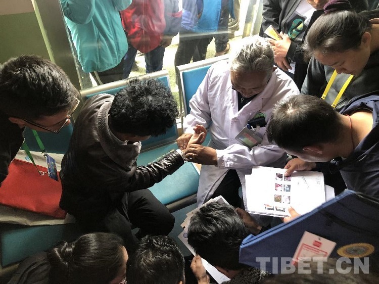 圖為著名藏醫(yī)藥專家旦松扎巴正在號脈 攝影:羅布扎西