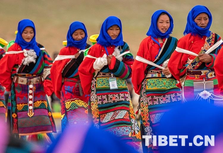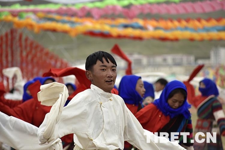 圖為7月25日,班戈縣第七屆納木錯(cuò)文化旅游民俗風(fēng)情賽馬藝術(shù)節(jié)開(kāi)幕式上的文藝表演 攝影:趙耀