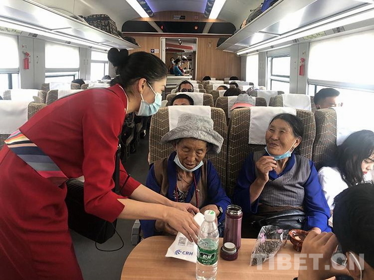 圖為拉林鐵路上乘務(wù)員正在為旅客服務(wù) 攝影:李海星 斯朗卓瑪