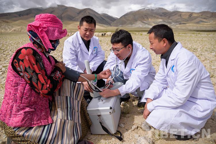 圖為陜西省組團(tuán)式醫(yī)療援藏專家在阿里地區(qū)農(nóng)牧區(qū)義診