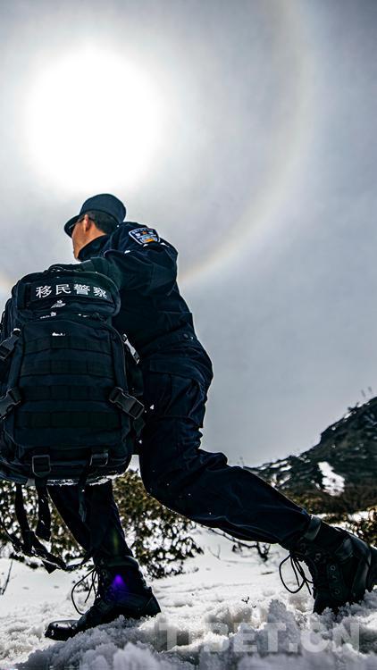 圖為西藏亞東出入境邊防檢查站民警在海拔4300余米的乃堆拉山口巡邏