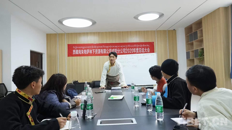 圖為西藏崗朱帕薩林下資源有限公司咸陽分公司2020年度總結(jié)大會留念照