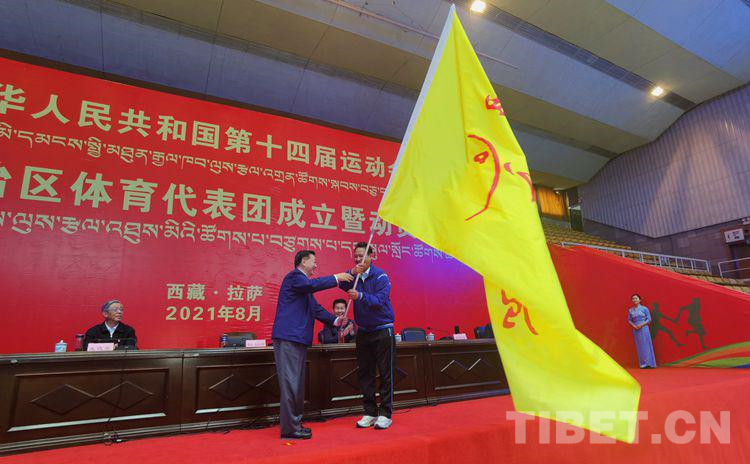 圖為第十四屆全運會西藏自治區(qū)體育代表團(tuán)成立授旗儀式 攝影:賈華加