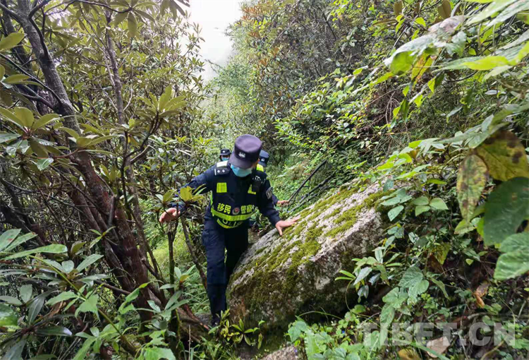 在民警們?nèi)粘5难策夁^(guò)程中,經(jīng)常能遇到一些蛇,吐著血紅的毒芯。一邊走,一邊用木條敲打著前面的草叢,這是民警們自創(chuàng)的驅(qū)蛇方式——“打草驚蛇”?!拔覀兩缴系纳呖啥嗔?,五顏六色的,好幾次我拍下來(lái)用網(wǎng)絡(luò)識(shí)圖識(shí)別,都無(wú)法找到答案……”民警朱瀅說(shuō)到。