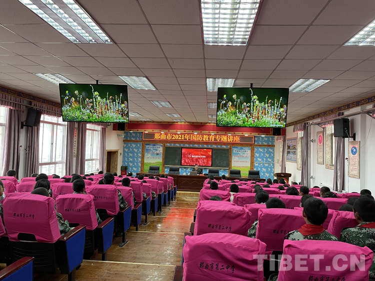 當(dāng)日下午,邀請那曲軍分區(qū)干部走進(jìn)校園為那曲市二中學(xué)生開展一次國防教育專題講座。專題講座開始前,首先由七年級格桑次仁和巴桑旺姆同學(xué)為大家深情朗誦《請黨放心 強(qiáng)軍有我》,一首詩詞朗誦把大家緩緩帶入課堂。由那曲軍分區(qū)唐鵬同志運(yùn)用豐富的知識和大量史實(shí),圍繞國防教育的重要意義等內(nèi)容為大家作了一場精彩的講座,利用媒體視頻、圖片資料給師生們講解了我國國防現(xiàn)狀、國防建設(shè)的重要作用,讓學(xué)生掌握基本軍事知識技能,加深對軍隊(duì)的認(rèn)識和理解,整個講座旁征博引,數(shù)據(jù)翔實(shí),觀點(diǎn)敏銳,既有清晰的歷史脈絡(luò),又有具體事件的介紹,在同學(xué)中引起了強(qiáng)烈共鳴。