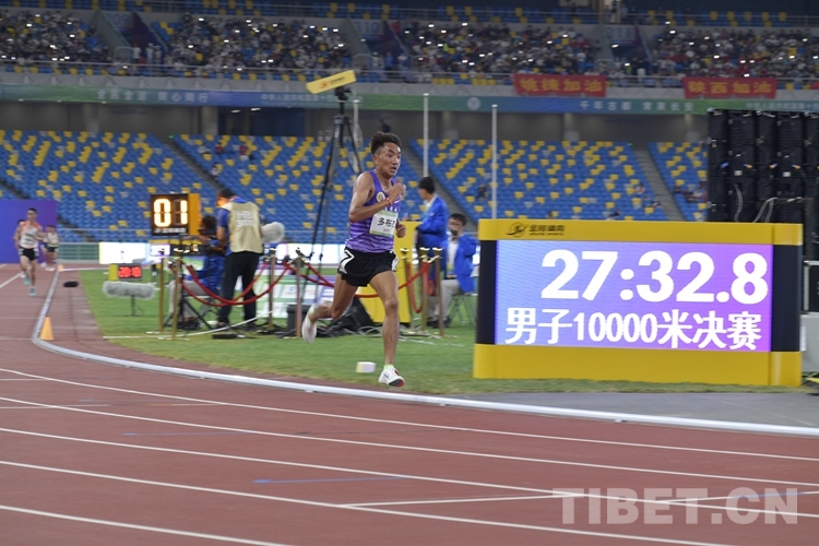 在田徑項(xiàng)目男子10000米決賽中,西藏自治區(qū)選手多布杰以28分35秒24的成績(jī)力壓群雄,勇奪冠軍,為西藏奪得本屆全運(yùn)會(huì)第二金,蟬聯(lián)兩屆全運(yùn)會(huì)該項(xiàng)目的冠軍。