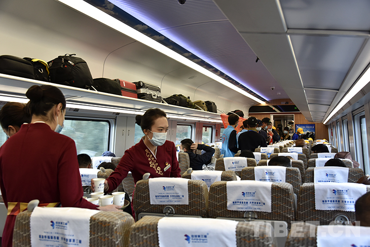 在當(dāng)日的動(dòng)車上,記者遇上了38名第一次感受復(fù)興號(hào)的中小學(xué)生。他們來自那曲市安多縣,此次動(dòng)車之旅,由中國鐵路青藏集團(tuán)有限公司(以下簡稱“青藏集團(tuán)公司”)駐安多縣帕那鎮(zhèn)申格卡崗村工作隊(duì)組織,目的在于讓孩子們走出草原、增長見識(shí)。