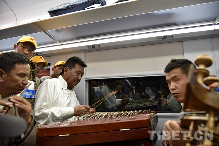 圖為9月25日D8981次動(dòng)車上,視障人士為乘客表演節(jié)目 攝影:王媛媛