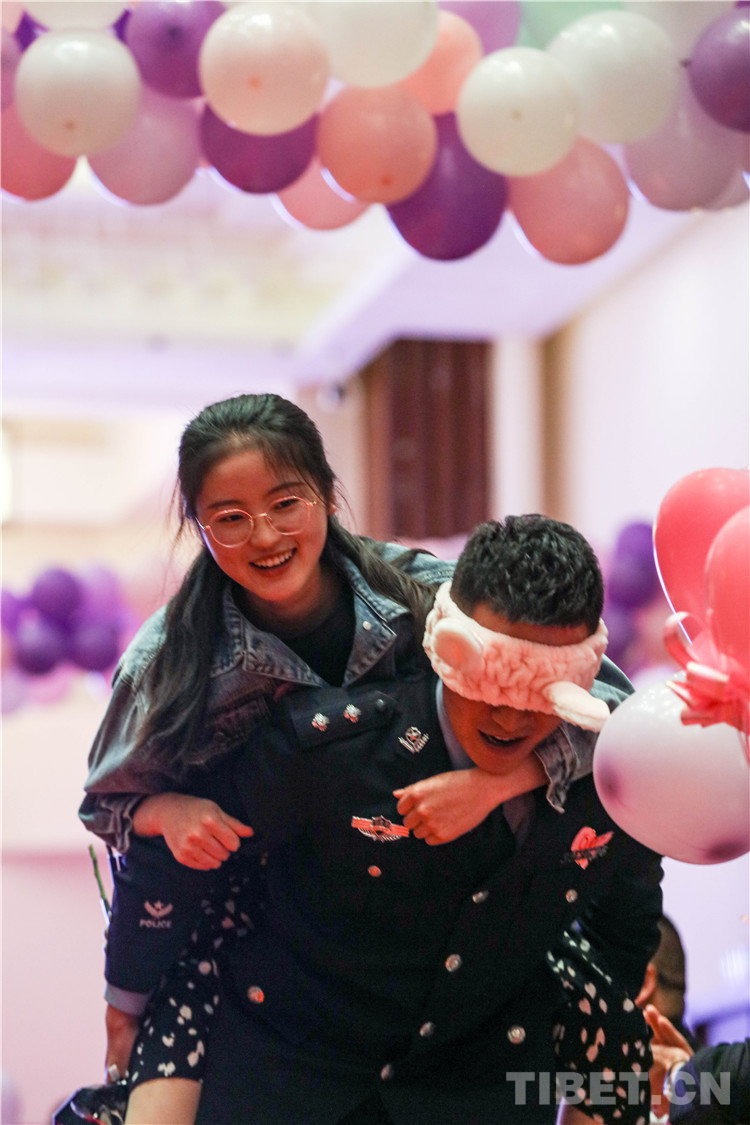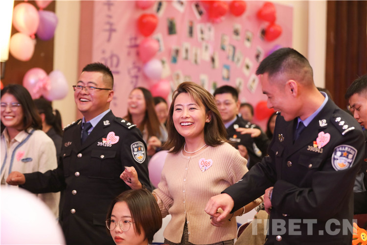 活動過程中,總站形象宣傳片《我是誰》,向女嘉賓們展現(xiàn)了西藏移民管理警察的職業(yè)特點,使女嘉賓對民警工作職責產生了初步的認識。在主持人的引導下,精彩的才藝展示和豐富的游戲環(huán)節(jié)很快將現(xiàn)場氣氛推向一個接一個的高潮?;佑螒颉盃渴譅繍邸薄靶挠徐`犀”“守護愛情”“唯愛接力”通過聆聽詩句抓緊手指、借助比劃你問我答,相互協(xié)助完成任務等方式增進了男女嘉賓之間的了解和默契,促進了相互之間更好交流。男女嘉賓才藝表演和日喀則邊境管理支隊1753樂隊送上的精彩曲目,令活動現(xiàn)場青春洋溢。最終,18對男女嘉賓互生情愫,牽手成功,36對交換聯(lián)系方式,開啟更加深入的幸福交流。