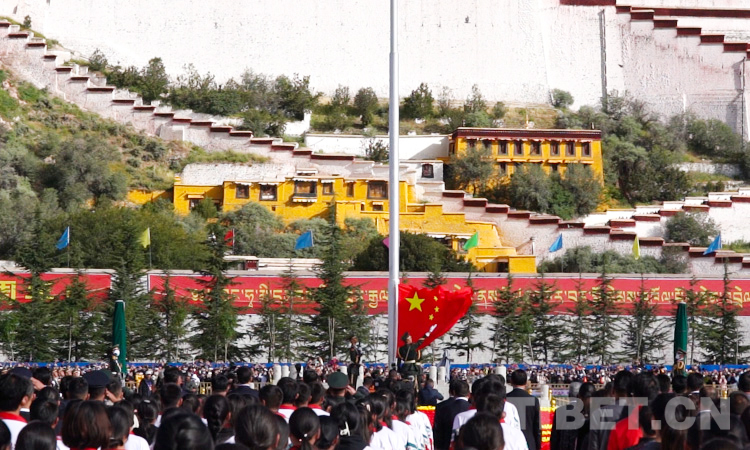 圖為西藏自治區(qū)慶祝中華人民共和國(guó)成立72周年“升國(guó)旗、唱國(guó)歌”儀式現(xiàn)場(chǎng) 攝影:趙耀