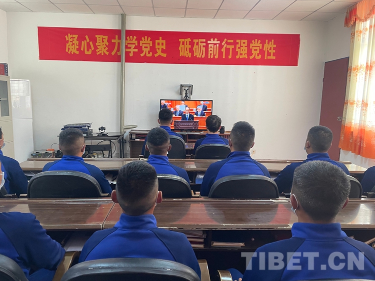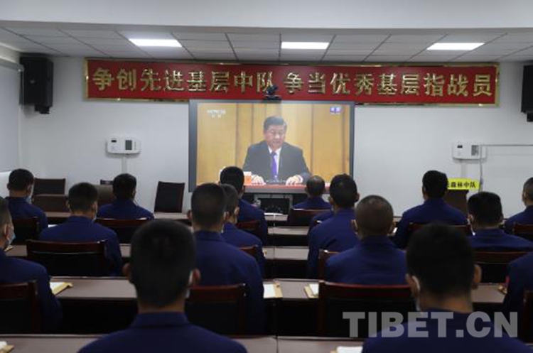 圖為那曲市森林消防大隊山南駐防分隊組織觀看紀念辛亥革命110周年大會直播