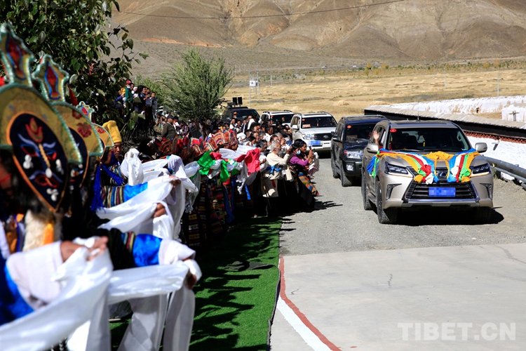 沿途農(nóng)牧區(qū)的信教群眾聞訊前來,身著傳統(tǒng)節(jié)日盛裝、手捧潔白哈達(dá),隊(duì)伍綿延數(shù)里,虔誠迎候班禪的到來。每當(dāng)遇到前來迎接的信教群眾,班禪便示意車輛緩行,開窗向信眾揮手致意,氣度不凡又格外親切。